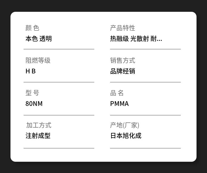 热融级 光散射 耐候性好 电子光学仪器 照明灯具 PMMA 80NM 日本旭化成